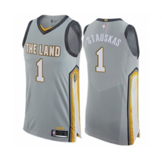 Men's Cleveland Cavaliers #1 Nik Stauskas Authentic Gray Basketball Jersey - City Edition