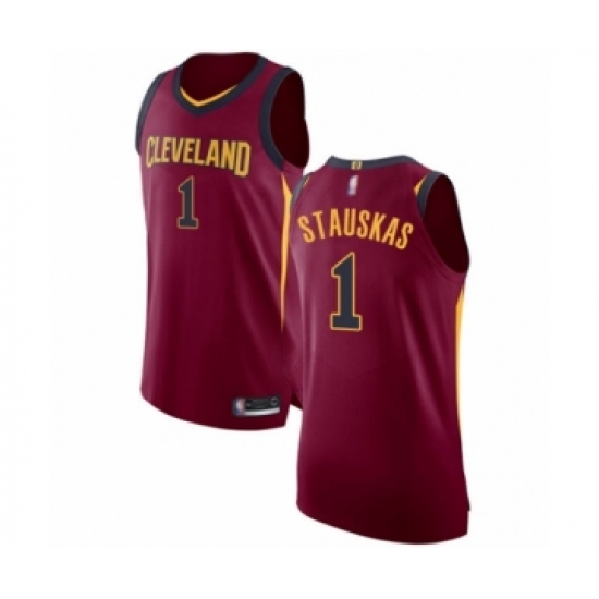 >Men's Cleveland Cavaliers #1 Nik Stauskas Authentic Maroon Basketball Jersey - Icon Edition