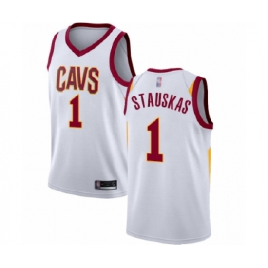 >Men's Cleveland Cavaliers #1 Nik Stauskas Authentic White Basketball Jersey - Association Edition