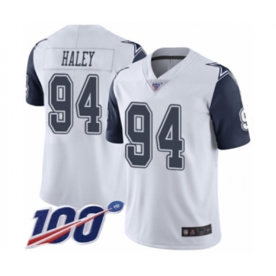 Men's Dallas Cowboys #94 Charles Haley Limited White Rush Vapor Untouchable 100th Season Football Jersey