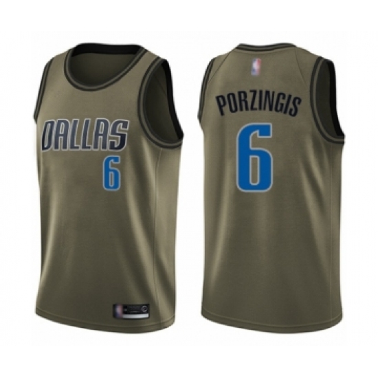 >Men's Dallas Mavericks #6 Kristaps Porzingis Swingman Green Salute to Service Basketball Jersey