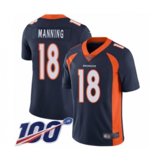 >Men's Denver Broncos #18 Peyton Manning Navy Blue Alternate Vapor Untouchable Limited Player 100th Season Football Jersey