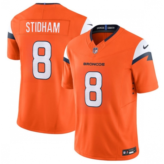 >Men's Denver Broncos #8 Jarrett Stidham Orange 2025 F.U.S.E. Vapor Limited Football Stitched Jersey