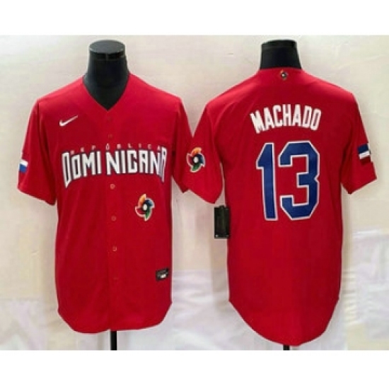 Men's Dominican Republic Baseball #13 Manny Machado 2023 Red World Classic Stitched Jerseys