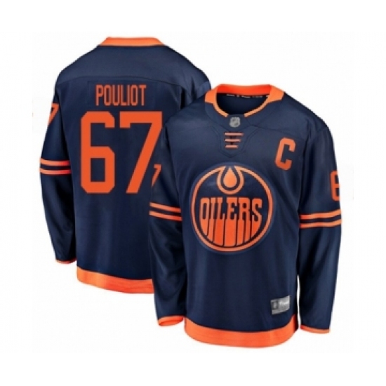 >Men's Edmonton Oilers #67 Benoit Pouliot Authentic Navy Blue Alternate Fanatics Branded Breakaway Hockey Jersey