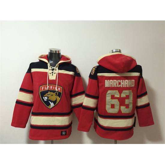 >Men's Florida Panthers #63 Brad Marchand Red Lace-Up Pullover Hoodie