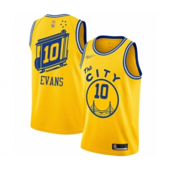 >Men's Golden State Warriors #10 Jacob Evans Authentic Gold Hardwood Classics Basketball Jersey - The City Classic Edition
