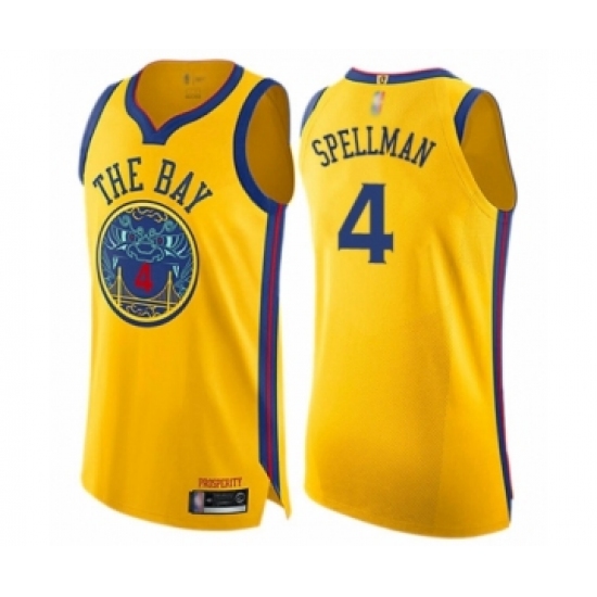 >Men's Golden State Warriors #4 Omari Spellman Authentic Gold Basketball Jersey - City Edition