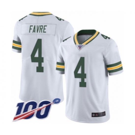 Men's Green Bay Packers #4 Brett Favre White Vapor Untouchable Limited Player 100th Season Football Jersey