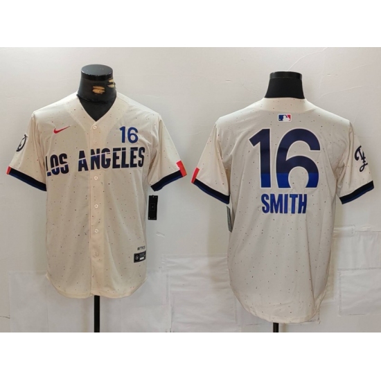 Men's Los Angeles Dodgers #16 Will Smith Cream 2024 City Connect Limited Stitched Jersey