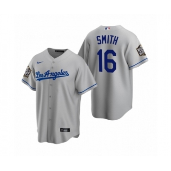 Men's Los Angeles Dodgers #16 Will Smith Gray 2020 World Series Champions Road Replica Jersey