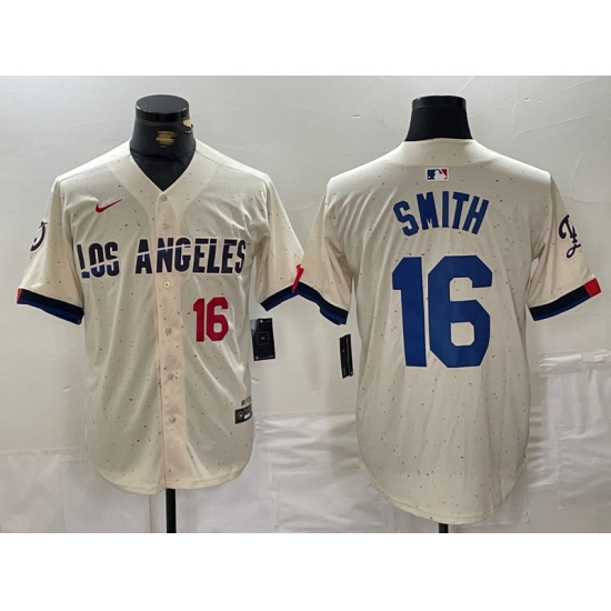 Men's Los Angeles Dodgers #16 Will Smith Number Cream 2024 City Connect Limited Stitched Jerseys