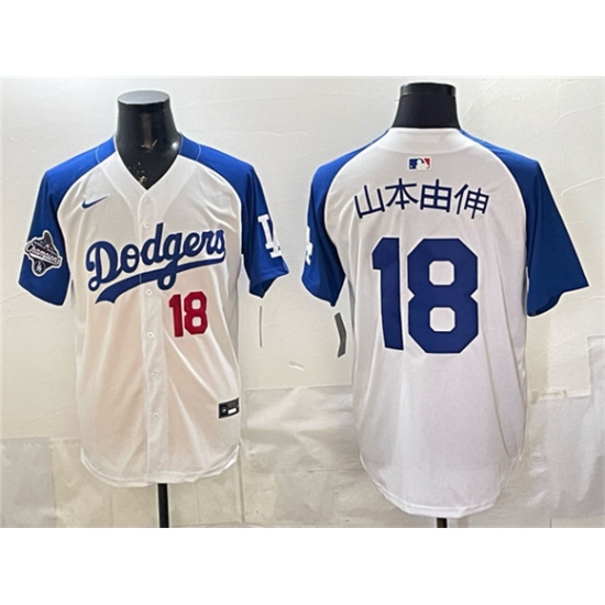 >Men's Los Angeles Dodgers #18 山本由伸 White Royal 2025 World Series Champions Limited Stitched Baseball Jersey