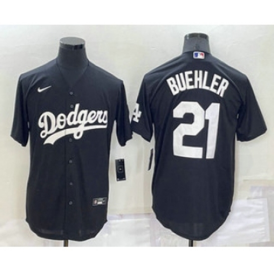 >Men's Los Angeles Dodgers #21 Walker Buehler Black Turn Back The Clock Stitched Cool Base Jersey