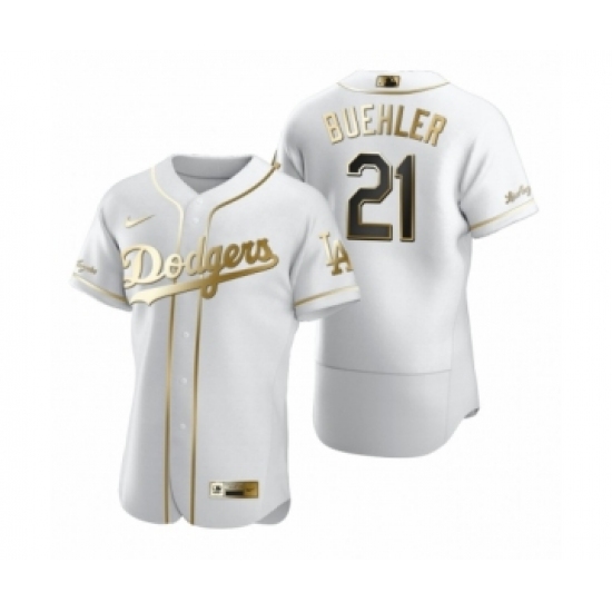 Men's Los Angeles Dodgers #21 Walker Buehler Nike White Authentic Golden Edition Jersey