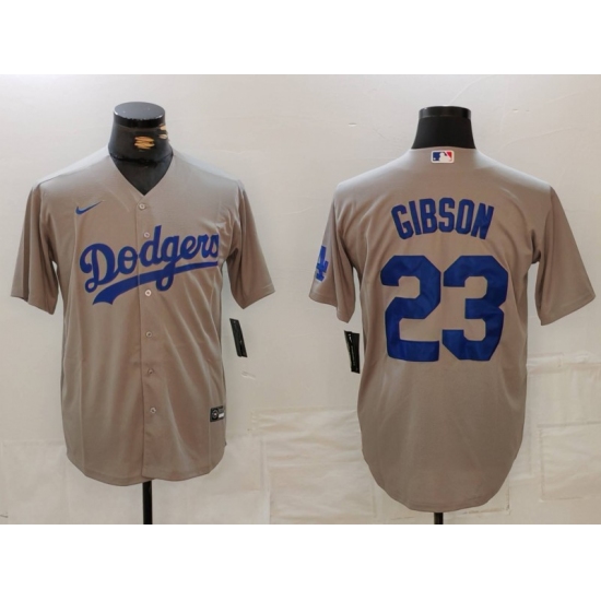 Men's Los Angeles Dodgers #23 Kirk Gibson Grey Cool Base Stitched Jersey