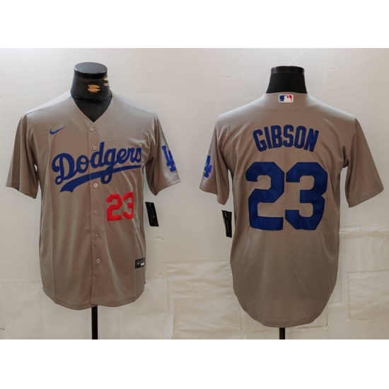 Men's Los Angeles Dodgers #23 Kirk Gibson Number Grey With los Cool Base Stitched Jerseys