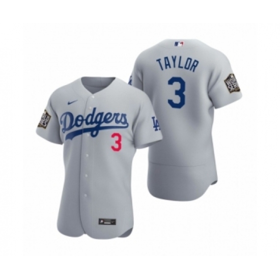 Men's Los Angeles Dodgers #3 Chris Taylor Nike Gray 2020 World Series Authentic Jersey