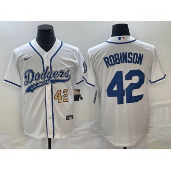 Men's Los Angeles Dodgers #42 Jackie Robinson White With Patch Cool Base Stitched Baseball Jersey