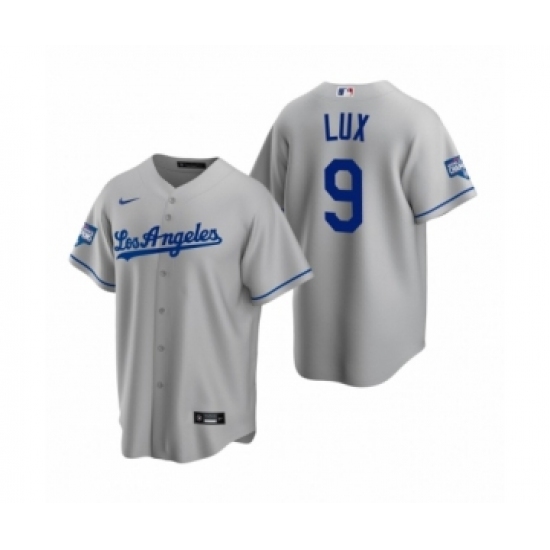 Men's Los Angeles Dodgers #9 Gavin Lux Gray 2020 World Series Champions Road Replica Jerseys