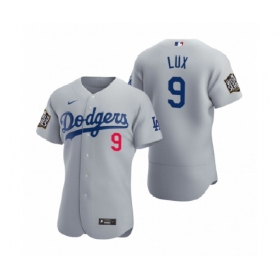 Men's Los Angeles Dodgers #9 Gavin Lux Nike Gray 2020 World Series Authentic Jerseys
