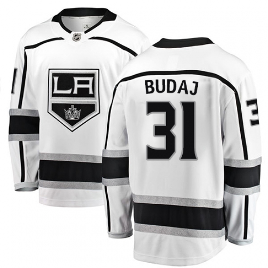 >Men's Los Angeles Kings #31 Peter Budaj Authentic White Away Fanatics Branded Breakaway NHL Jersey