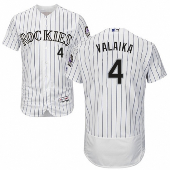 >Men's Majestic Colorado Rockies #4 Pat Valaika White Home Flex Base Authentic Collection MLB Jersey