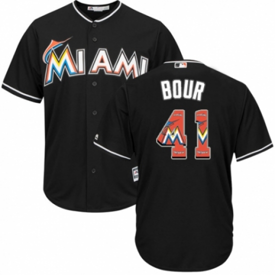 Men's Majestic Miami Marlins #41 Justin Bour Black Alternate Flex Base Authentic Collection MLB Jersey