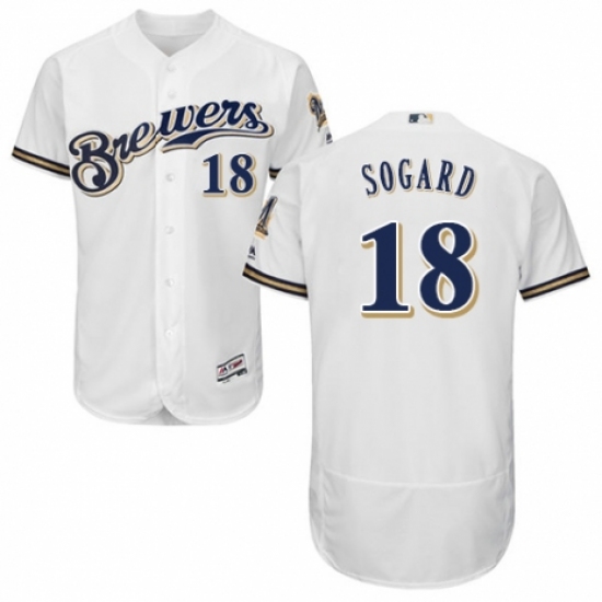 Men's Majestic Milwaukee Brewers #18 Eric Sogard Navy Blue Alternate Flex Base Authentic Collection MLB Jersey