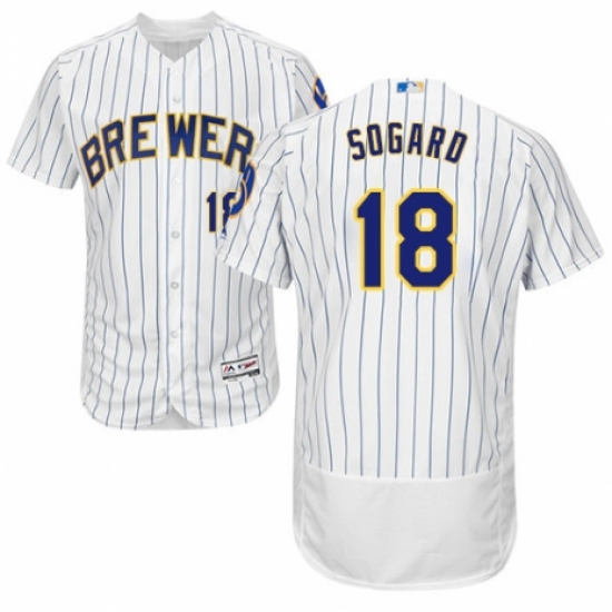 Men's Majestic Milwaukee Brewers #18 Eric Sogard White Home Flex Base Authentic Collection MLB Jersey
