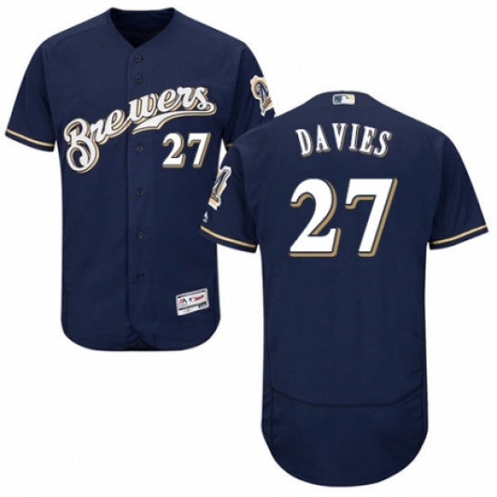 Men's Majestic Milwaukee Brewers #27 Zach Davies Navy Blue Alternate Flex Base Authentic Collection MLB Jersey