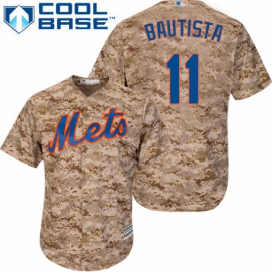 >Men's Majestic New York Mets #11 Jose Bautista Authentic Camo Alternate Cool Base MLB Jersey
