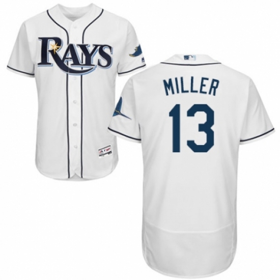 Men's Majestic Tampa Bay Rays #13 Brad Miller Home White Home Flex Base Authentic Collection MLB Jersey