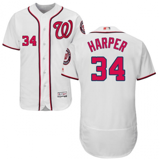 Home>MLB>Washington Nationals>Bryce Harper>Men's Majestic Washington Nationals #34 Bryce Harper White Home Flex Base Authentic Collection MLB Jersey