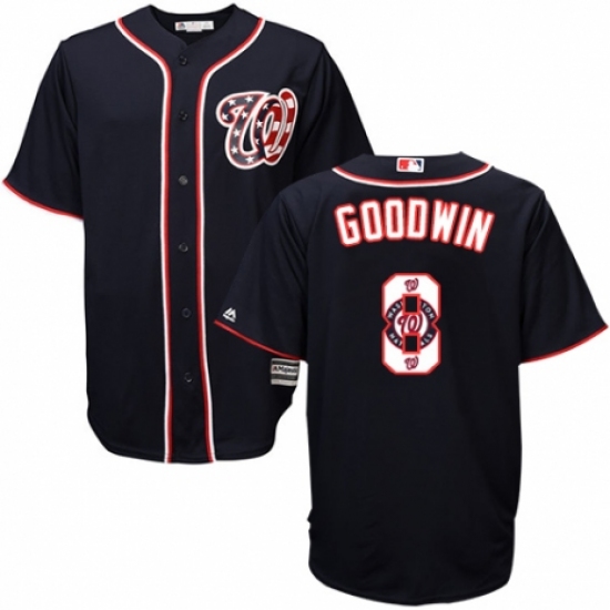 >Men's Majestic Washington Nationals #8 Brian Goodwin Authentic Navy Blue Team Logo Fashion Cool Base MLB Jersey