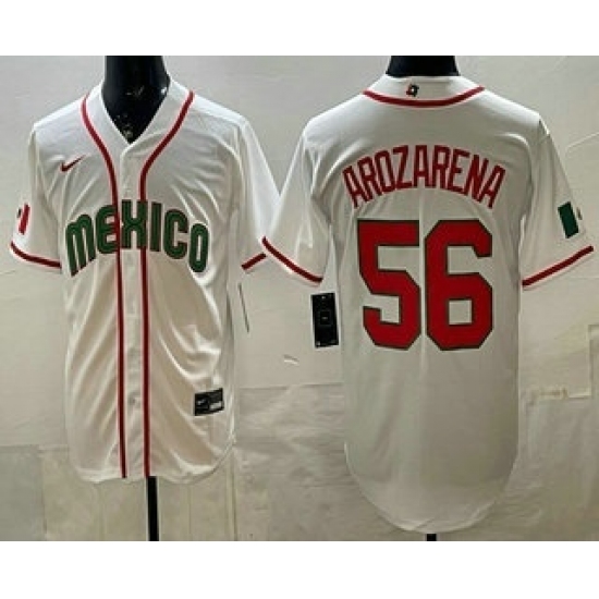 >Men's Mexico #56 Randy Arozarena White 2026 World Baseball Classic Cool Base Jersey
