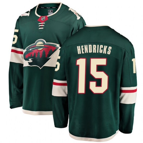 >Men's Minnesota Wild #15 Matt Hendricks Authentic Green Home Fanatics Branded Breakaway NHL Jersey