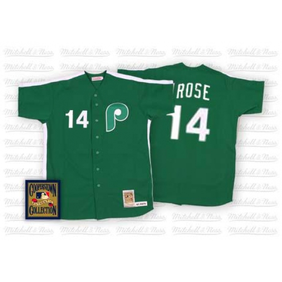 Men's Mitchell and Ness Philadelphia Phillies #14 Pete Rose Replica Green Throwback MLB Jersey