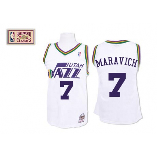 Men's Mitchell and Ness Utah Jazz #7 Pete Maravich Swingman White Throwback NBA Jersey