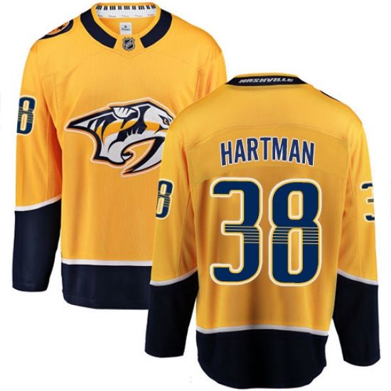 >Men's Nashville Predators #38 Ryan Hartman Fanatics Branded Gold Home Breakaway NHL Jersey