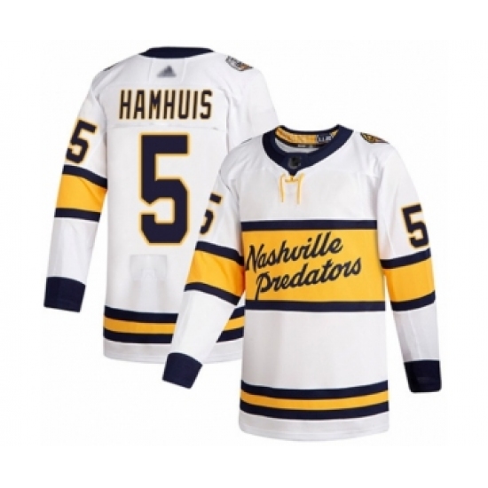 >Men's Nashville Predators #5 Dan Hamhuis Authentic White 2020 Winter Classic Hockey Jersey