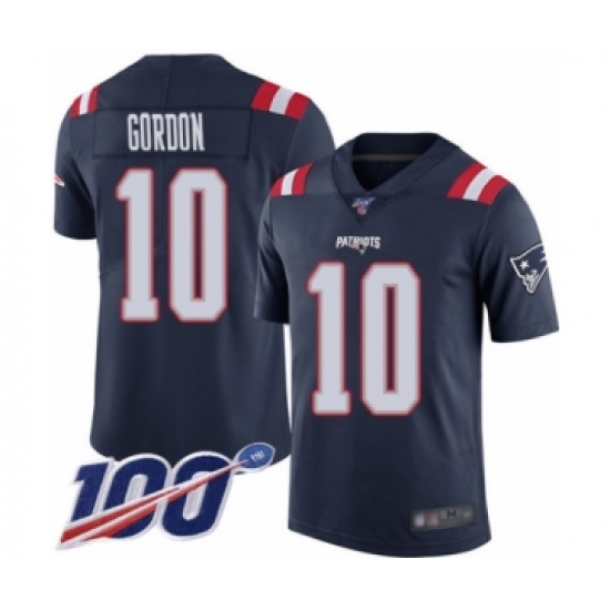 >Men's New England Patriots #10 Josh Gordon Limited Navy Blue Rush Vapor Untouchable 100th Season Football Jersey