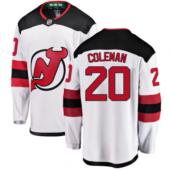 >Men's New Jersey Devils #20 Blake Coleman Fanatics Branded White Away Breakaway NHL Jersey