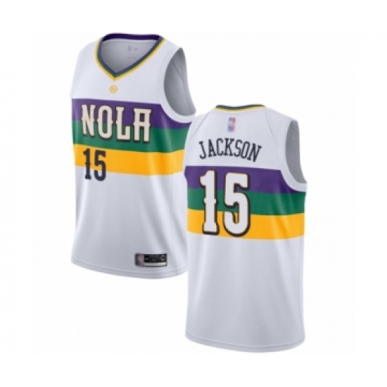 >Men's New Orleans Pelicans #15 Frank Jackson Authentic White Basketball Jersey - City Edition