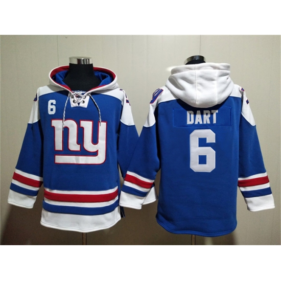 >Men's New York Giants #6 Jaxson Dart Blue Ageless Must-Have Lace-Up Pullover Hoodie