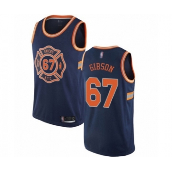 >Men's New York Knicks #67 Taj Gibson Authentic Navy Blue Basketball Jersey - City Edition