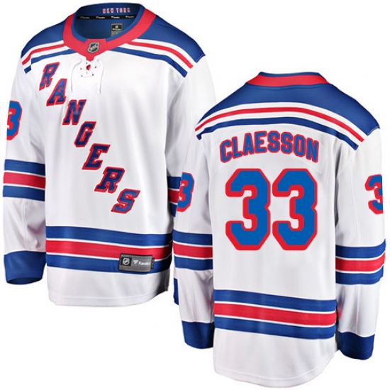 >Men's New York Rangers #33 Fredrik Claesson Fanatics Branded White Away Breakaway NHL Jersey