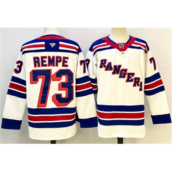 >Men's New York Rangers #73 Matt Rempe White 2024-25 Away Stitched Hockey Jersey