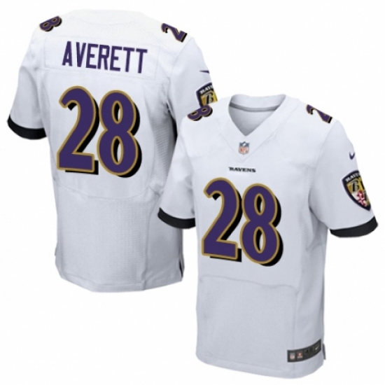 >Men's Nike Baltimore Ravens #28 Anthony Averett Elite White NFL Jersey