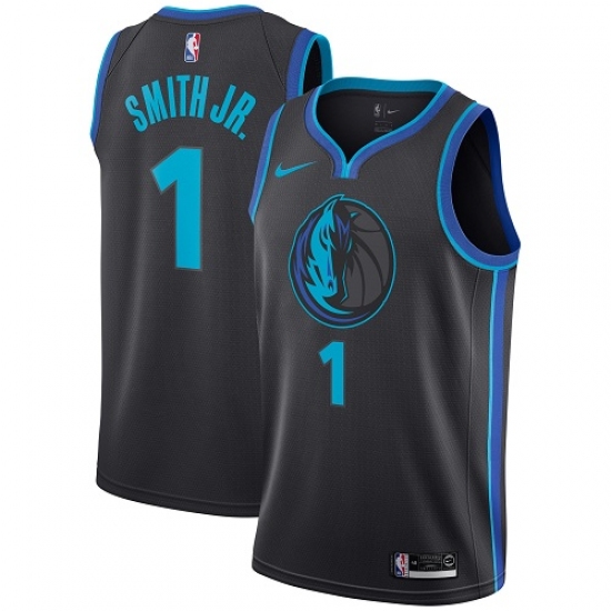 >Men's Nike Dallas Mavericks #1 Dennis Smith Jr. Swingman Charcoal NBA Jersey - City Edition